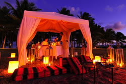 ハネムーンディナーをビーチin南の島で楽しんでいるであろうテントを眺めながら、